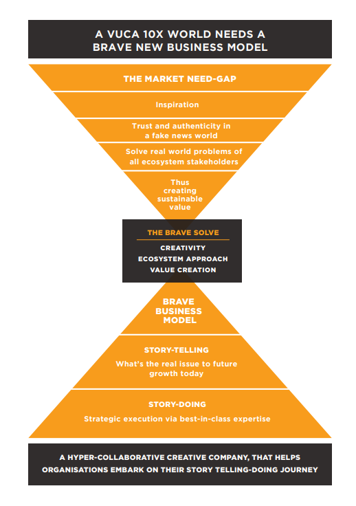 HYPER-COLLABORATION IS THE CHANGING FACE OF ANY CREATIVE ORGANISATION. BRAVE EMBARKED ON THIS JOURNEY EARLY, IN 2019. OUR MANTRA HAS BEEN,“COLLABORATE, DON’T COMPETE”. COMPLEX BUSINESS SCENARIOS, NEED COLLECTIVE INTELLIGENCE. BY BRINGING TOGETHER DIVERSE MINDS, WE HELP SPARK NEW IDEAS IN REAL TIME. OUR ECOSYSTEM MINDSET LOOKS AT THE WHOLE, AND THEN SEES THE PARTS THAT INDIVIDUALS CAN CONTRIBUTE. IT MEANS BREAKING DOWN SILOS, EMBRACING THE UNCOMFORTABLE AND A CULTURE OF SHARING KNOWLEDGE AND CAPABILITIES. ONLY FLUID TEAMS CAN BEST ADJUST AND RESPOND TO OPPORTUNITIES. WE BELIEVE THAT CO-CREATION LEADS TO VALUE CREATION. WE ARE WILLING TO UNLEARN, STAYING CURIOUS, AND BEING FEARLESS, DESPITE OUR VULNERABILITIES. AGILITY IN DECISION MAKING IS A COMPETITIVE ADVANTAGE TODAY. WE HAVE CHOSEN AN UNTRODDEN PATH, A MORE CHALLENGING JOURNEY AND EMBARKED ON A SEARCH FOR A NEW WORLD. IT’S TIME FOR US TO BRAVE ON!